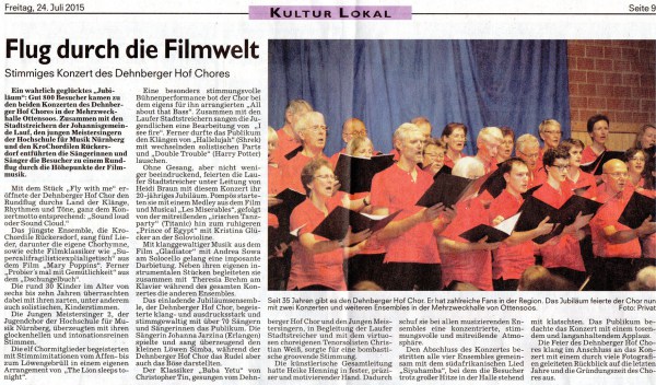 Am 19. Juli 2015 lud der Dehnberger Hof Chor zu seinem zweiten Jubiläumskonzert „Sound©loud“ in die Mehrzweckhalle Ottensoos ein.